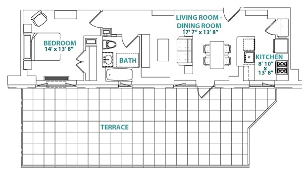 Studio, 1 Bath, 370 sq ftAvailability Details