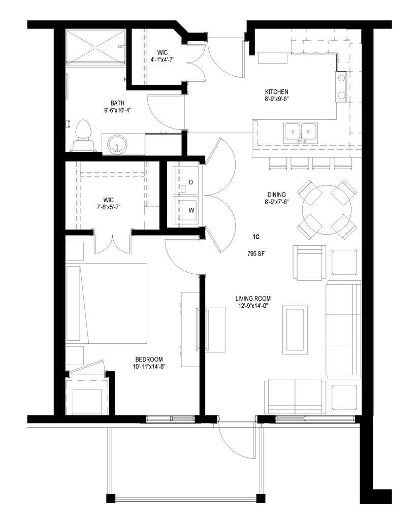 1 Bed, 1 Bath, 786 sq ftPlus FeesAvailable NowLargest 1 BedroomThis is the largest 1 Bedroom at this PropertyModel Gallery