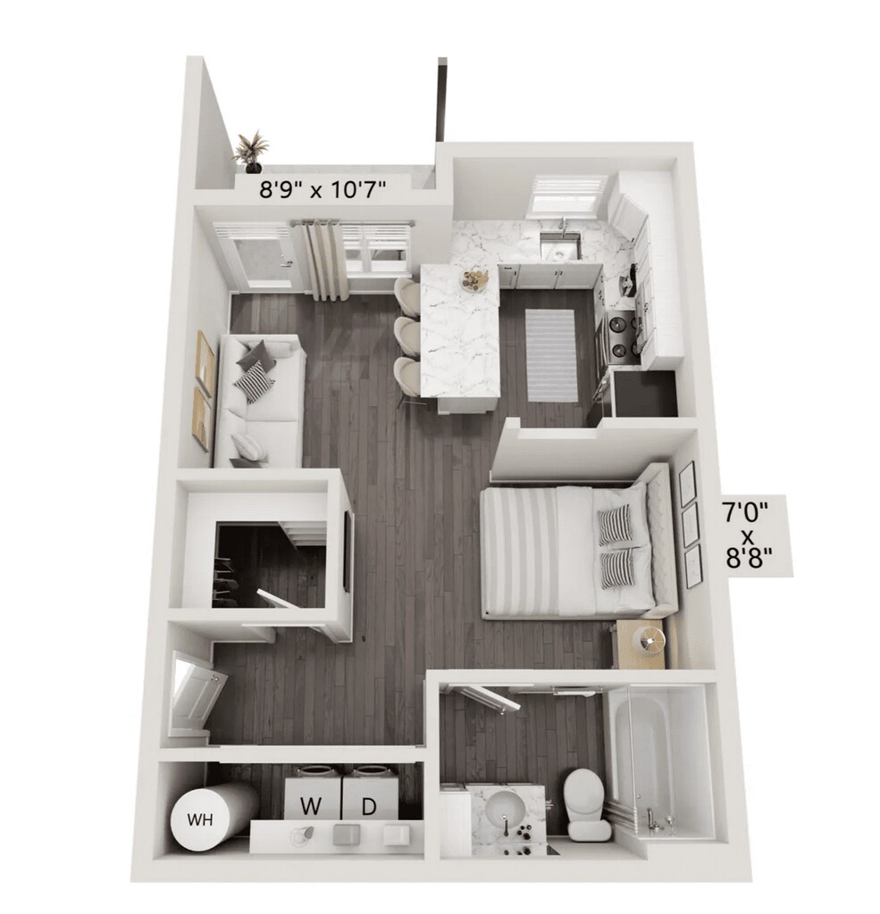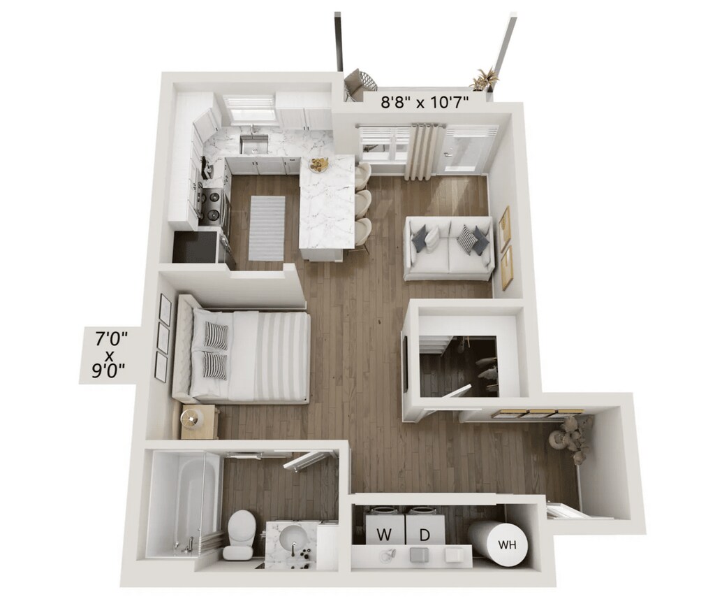 Studio, 1 Bath, 502 sq ftAvailable NowModel Gallery