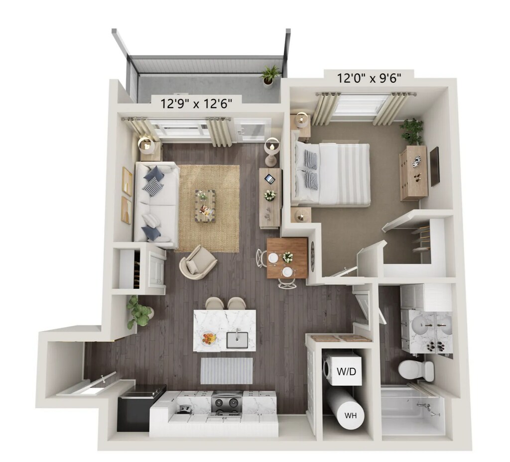 Apartment Model: FarmsteadFrom $1,7491 Bedroom, 1 Bath, 677 sq ftAvailable Now![]()