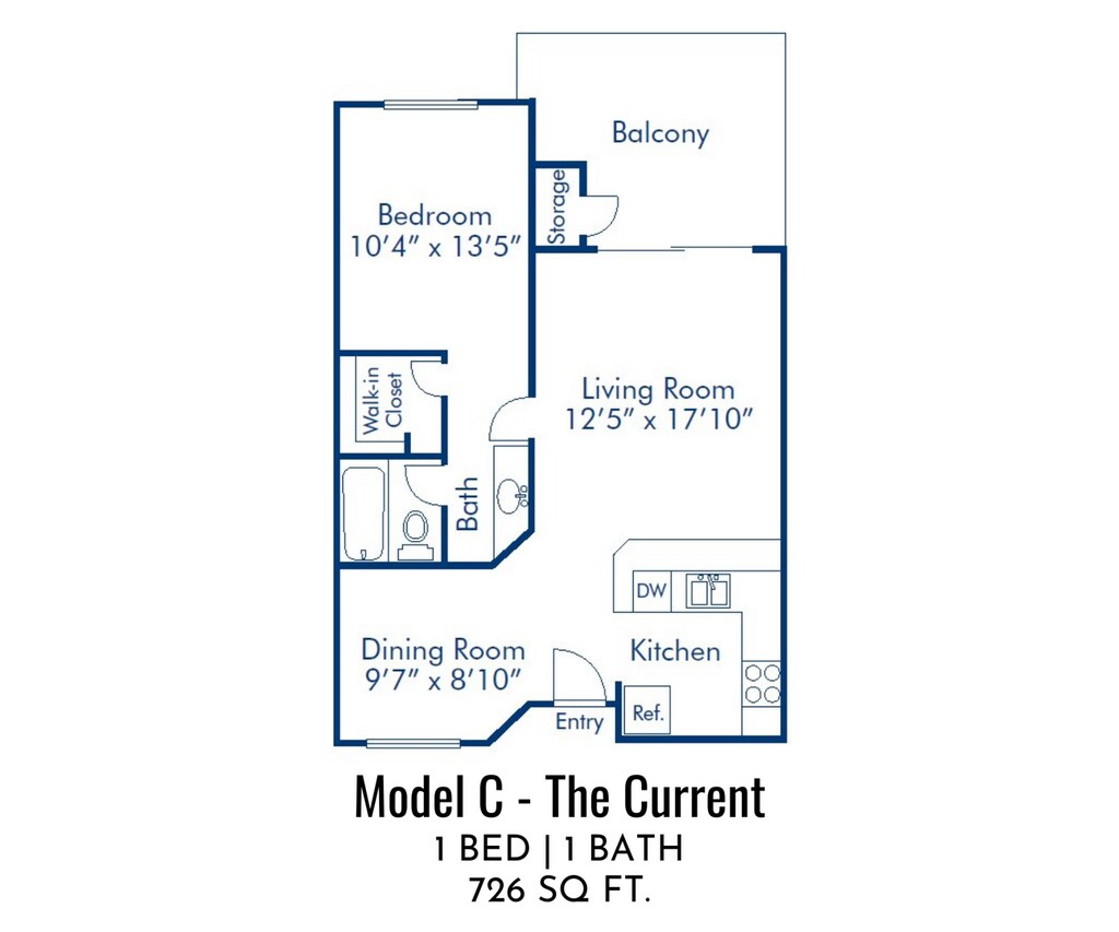 The Current - Floorplan 1 Apartment Unit: E-315Apartment Model: The Current$2,6551 Bedroom, 1 Bath, 726 sq ftAvailable Now![]()