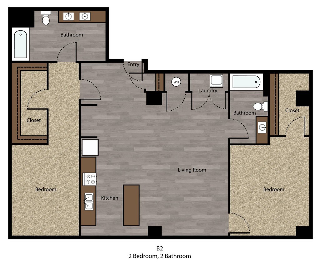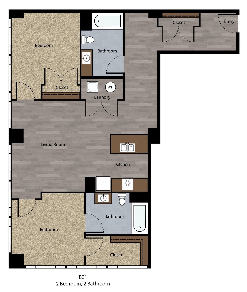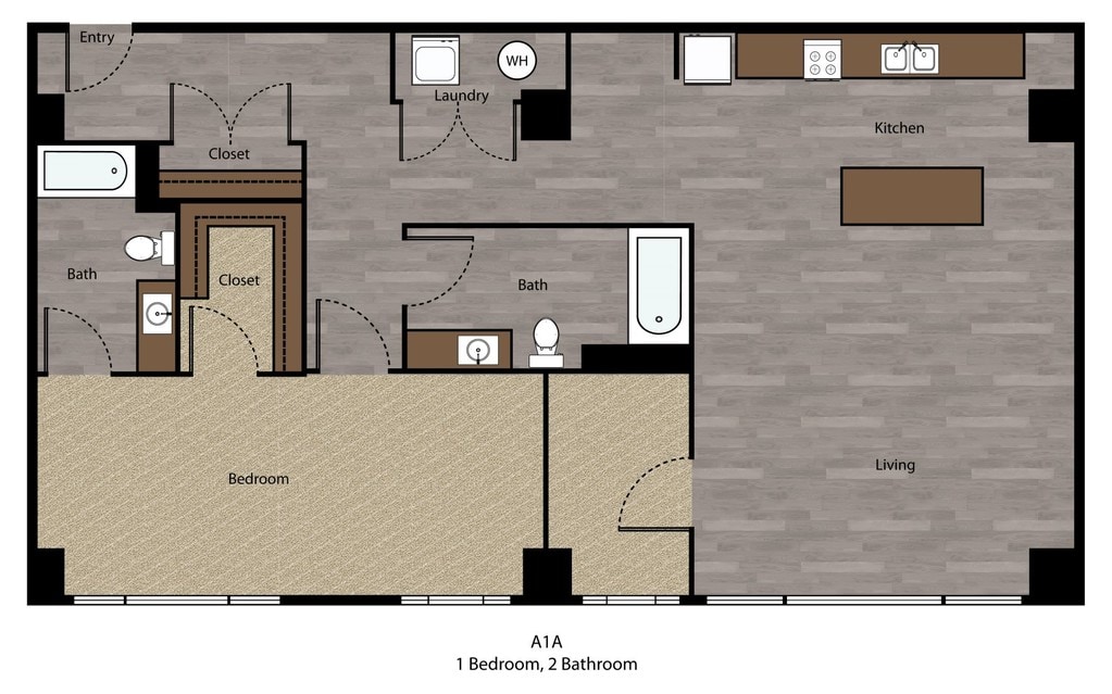 1 Bed, 2 Baths, 1630 sq ftAvailable NowLargest 1 BedroomThis is the largest 1 Bedroom at this PropertyModel Gallery