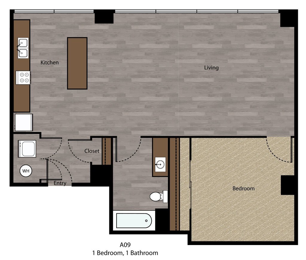 A09 - Floorplan 1 Apartment Unit: 1009Apartment Model: A091 Bedroom, 1 Bath, 980 sq ftAvailable NowApartment Unit: 0709Apartment Model: A091 Bedroom, 1 Bath, 975 sq ftAvailable NowApartment Unit: 1109Apartment Model: A091 Bedroom, 1 Bath, 980 sq ftAvailable November 23, 2025Floorplan A08