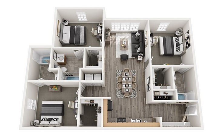 C3 - Floorplan 1 Apartment Unit: 238Apartment Model: C3$1,6903 Bedroom, 3 Bath, 1200 sq ftAvailable NowApartment Unit: 326Apartment Model: C3$1,6903 Bedroom, 3 Bath, 1200 sq ftAvailable March 6, 2026Apartment Unit: 336Apartment Model: C3$1,6903 Bedroom, 3 Bath, 1200 sq ftAvailable March 6, 2026Floorplan C2