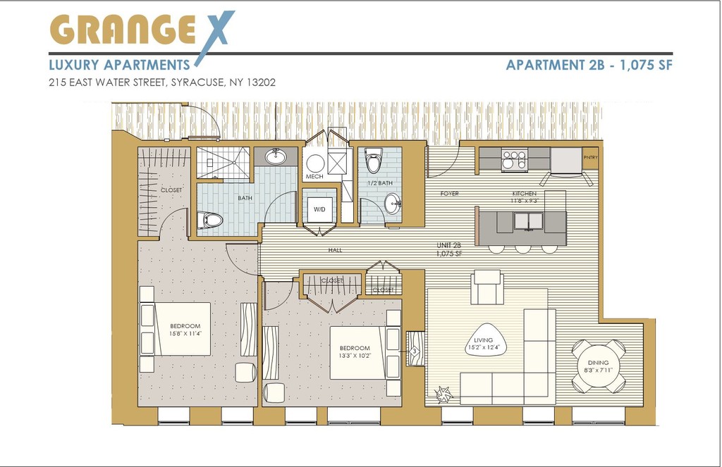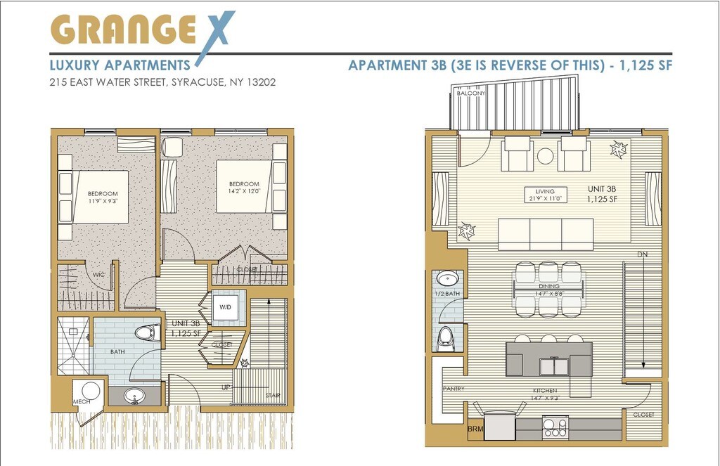 ***Please Call or Email For Availability*** GrangeX is a $3.4 million nine unit expansion of The Historic Grange Building renovation project completed in 2012. Each of the three original apartment homes encompasses and entire floor with 17 windows providing panoramic views of both Hanover and Clinton Squares. Each apartment contains 1,500 square feet with two bedrooms, two full bathrooms and a fireplace. GrangeX which was completed in January of 2019 contains three, two-bedroom flats and six two-bedroom townhouse style apartment homes. Each unit has either 1.5 or 2.5 baths and each townhouse has a private balcony. All apartments feature modern day luxuries including gourmet kitchens with granite countertops, tile back splashes, under counter lighting and stainless steel appliances; full size in-unit laundry; hardwood floors; custom walk-in showers and more. Included in the rent for each unit are amenities such as a tenant storage locker in the basement; fitness center; pet wash station; free high speed internet over a secured network; state of the art building access and security systems; and one on-site parking space per unit.