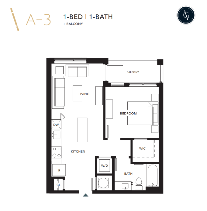One Bedroom - A3 - Floorplan 2 Apartment Unit: 705Apartment Model: One Bedroom - A3$2,1101 Bedroom, 1 Bath, 625 sq ftAvailable NowOne Bedroom, Den - B5
