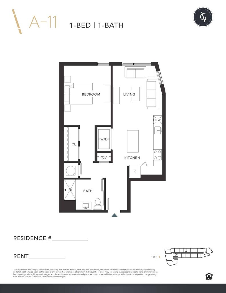 One Bedroom, Den - A11 - Floorplan 1 Apartment Unit: 514Apartment Model: One Bedroom, Den - A11$2,6501 Bedroom, 2 Bath, 798 sq ftAvailable November 7, 20252 Bedrooms