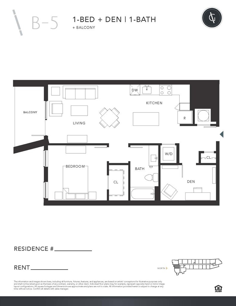 One Bedroom, Den - B5 - Floorplan 1 Apartment Unit: 523Apartment Model: One Bedroom, Den - B5$2,6351 Bedroom, 1 Bath, 812 sq ftAvailable NowOne Bedroom, Den - B2