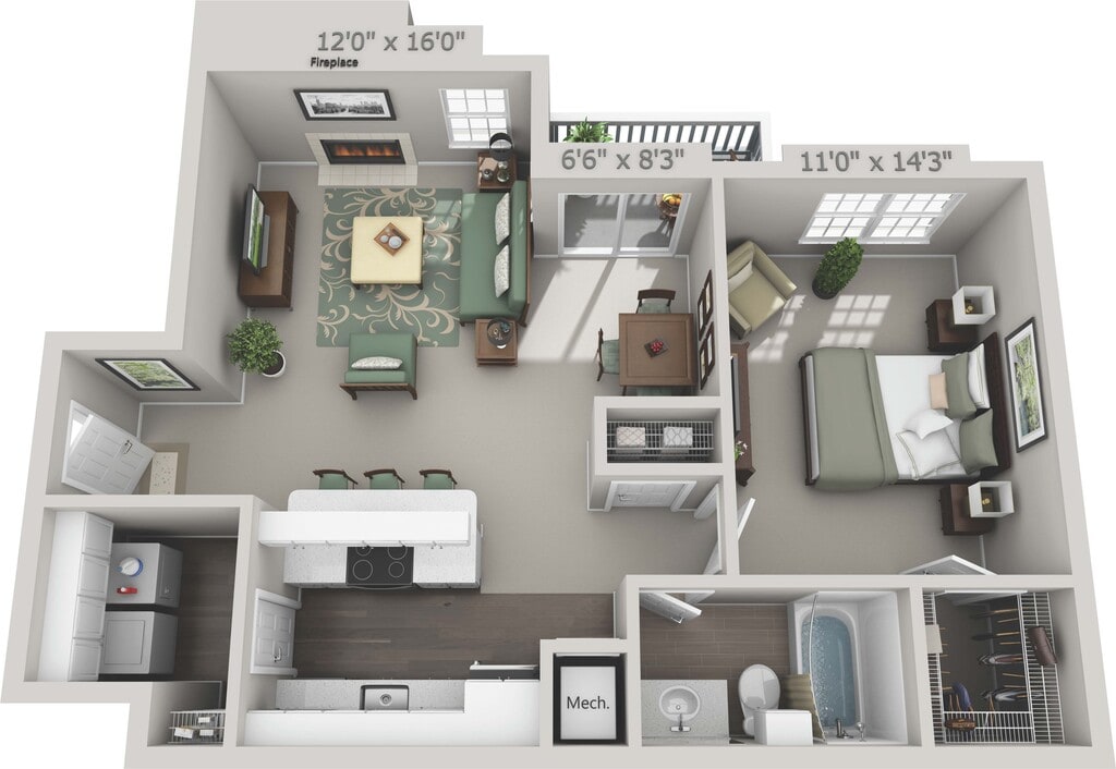 1 Bed, 1 Bath, 715 sq ftAvailable NowModel Gallery