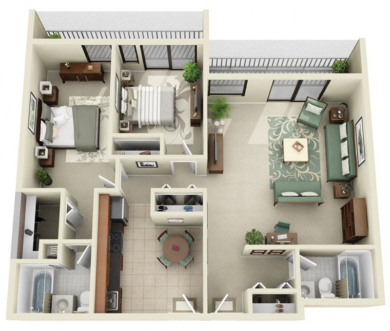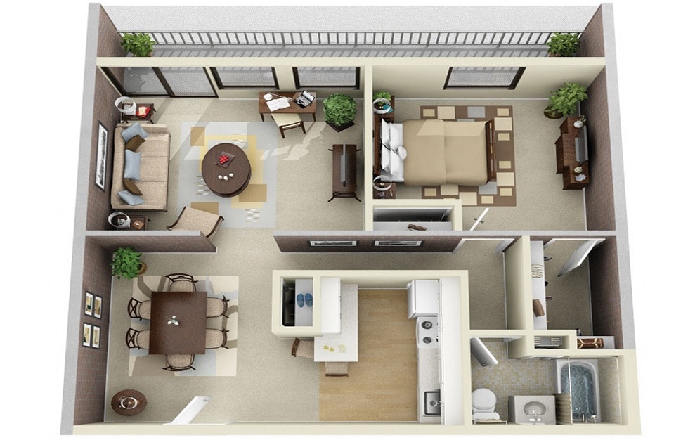 1 Bed, 1 Bath, 860 sq ftModel Gallery