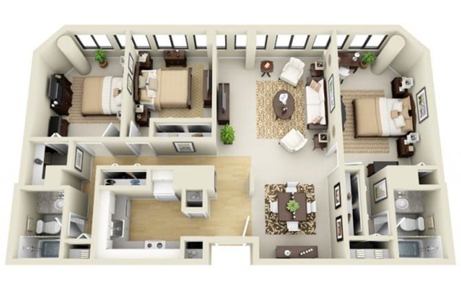 1 Bedroom to 3 Bedroom Apartments at The Greenhouse Apartments currently range from $3,325 to $5,895