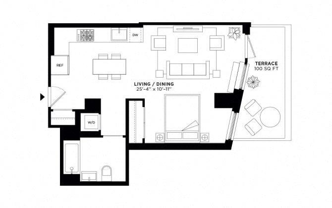 Studio, 1 Bath, 523 sq ftAvailability Details