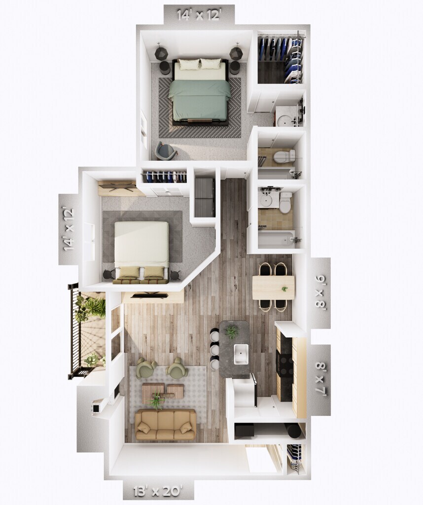 Apartment Model: Magnolia$1,7252 Bedroom, 2 Bath, 1002 sq ftAvailable NowMagnolia - Floorplan 1 Floorplan Oak