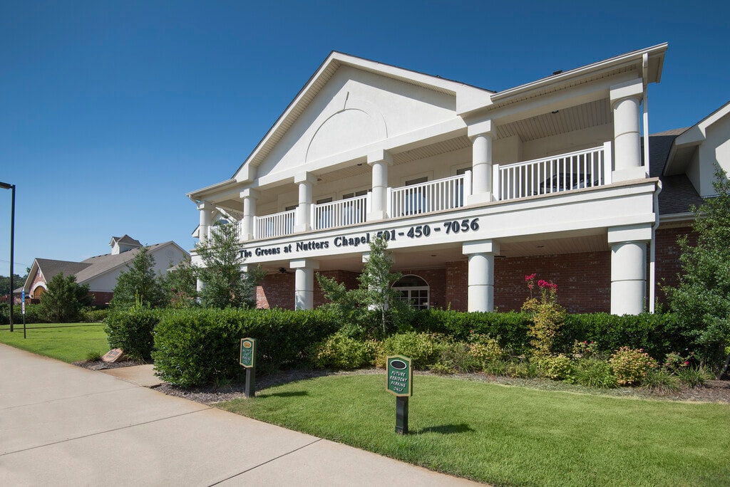 Welcome to The Greens at Nutters Chapel in Conway, Arkansas! Living in this beautifully developed apartment community provides everything you want right at home, in your own neighborhood. We are centrally located in Conway and just minutes from The University of Central Arkansas, Central Baptist College and Hendrix College as well as restaurants, shopping and businesses on Dave Ward Drive. Whether your preference is upstairs with added views or downstairs for convenience, your spacious apartment is well-designed for maximum space efficiency and comfort. Open floor plans featuring either 9-foot or vaulted ceilings and balconies (select plans) create the perfect atmosphere for both entertaining and comfortable living. Private bedrooms and baths offer the optimum layout for singles, families, or roommates. Enjoy the convenience of a full-size washer and dryer in each apartment and full-size appliances in the kitchen including refrigerator with ice maker, microwave, dishwasher, and disposal. Mini-blinds are featured in all rooms for privacy and ceiling fans enhance the apartments energy efficiency. Live on a 18-hole Championship golf course and enjoy a Golf Membership to Nutters Chapel Golf & Country Club. Our Clubhouse features a fitness center, recreation room, tanning beds, business center, whirlpool/sauna area, and a resort-style swimming pool with sundeck and cabana. The Greens at Nutters Chapel is also a pet-friendly community! Contact our office for more information on our pet policy. Contact us today for a tour and let us show you why you will LOVE where you LIVE and PLAY at The Greens at Nutters Chapel!