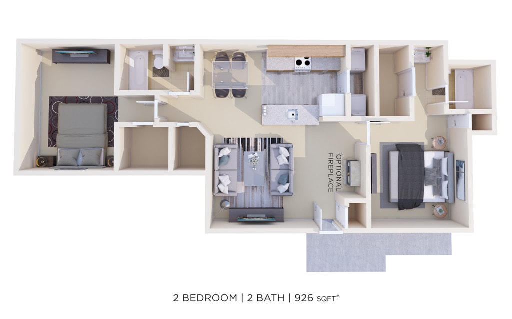 2 Beds, 1 Bath, 926 sq ftAvailable NowModel Gallery