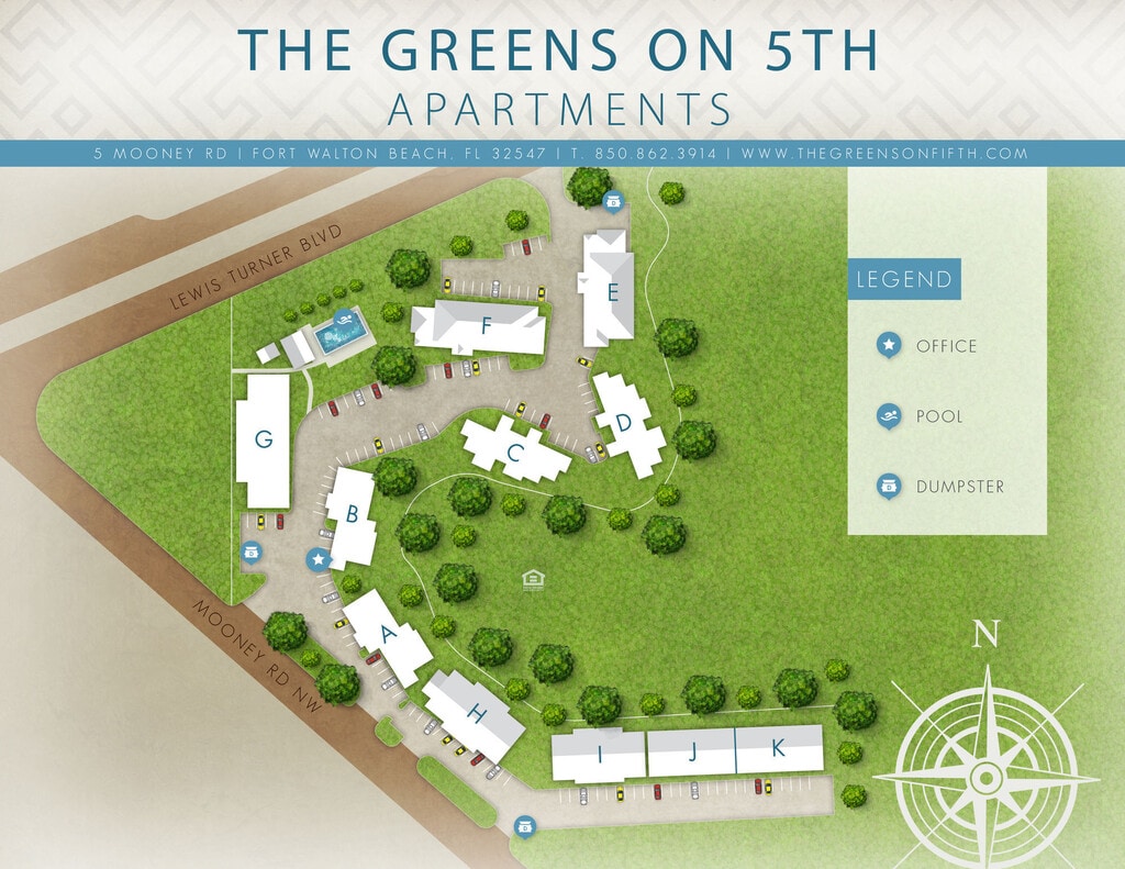 The Greens on 5th is located in the 32547 Zip code of Fort Walton Beach, FL.