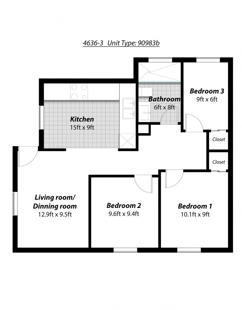 3 BEDROOM + 1 BATH - Floorplan 1 3 Bedrooms 1 Bathrooms
