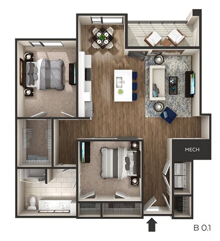 1 Bed, 1.5 Baths, 1130 sq ftAvailable NowModel Gallery