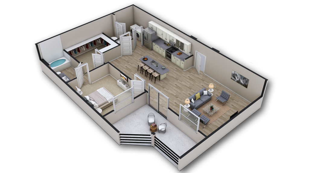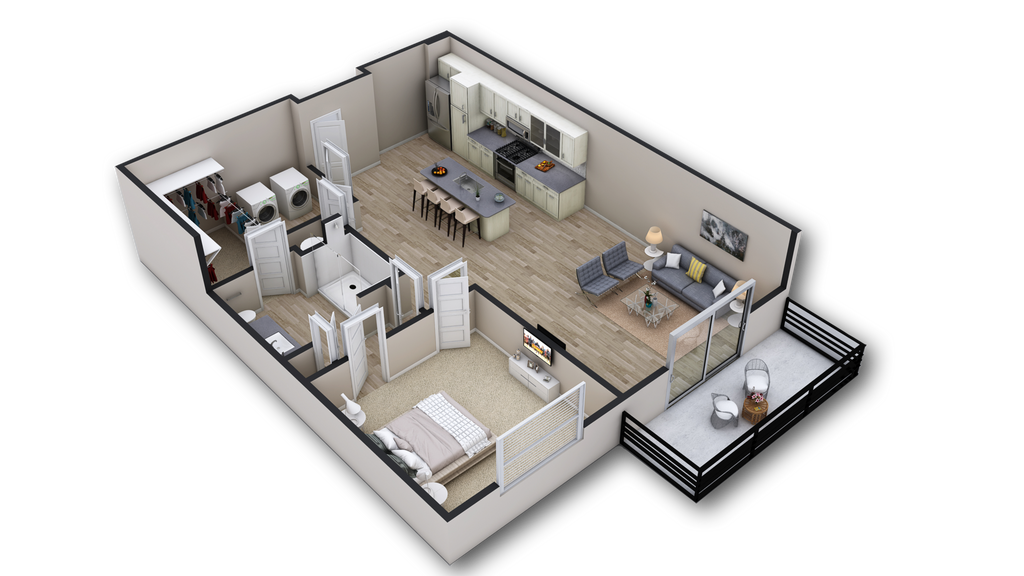 1 Bed, 1 Bath, 691 sq ftAvailable NowModel Gallery
