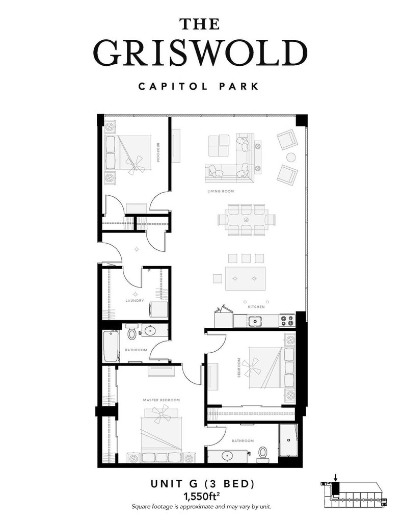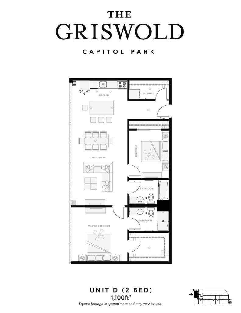 The Griswold offers 1 to 3 Bedroom apartments starting from $1,875 and having 750–1,550 sq ft. Here is the current pricing and availability: