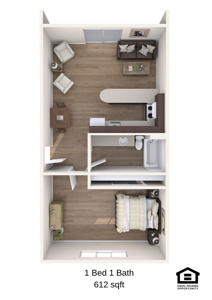 1 Bed, 1 Bath, 612 sq ftAvailable NowModel Gallery