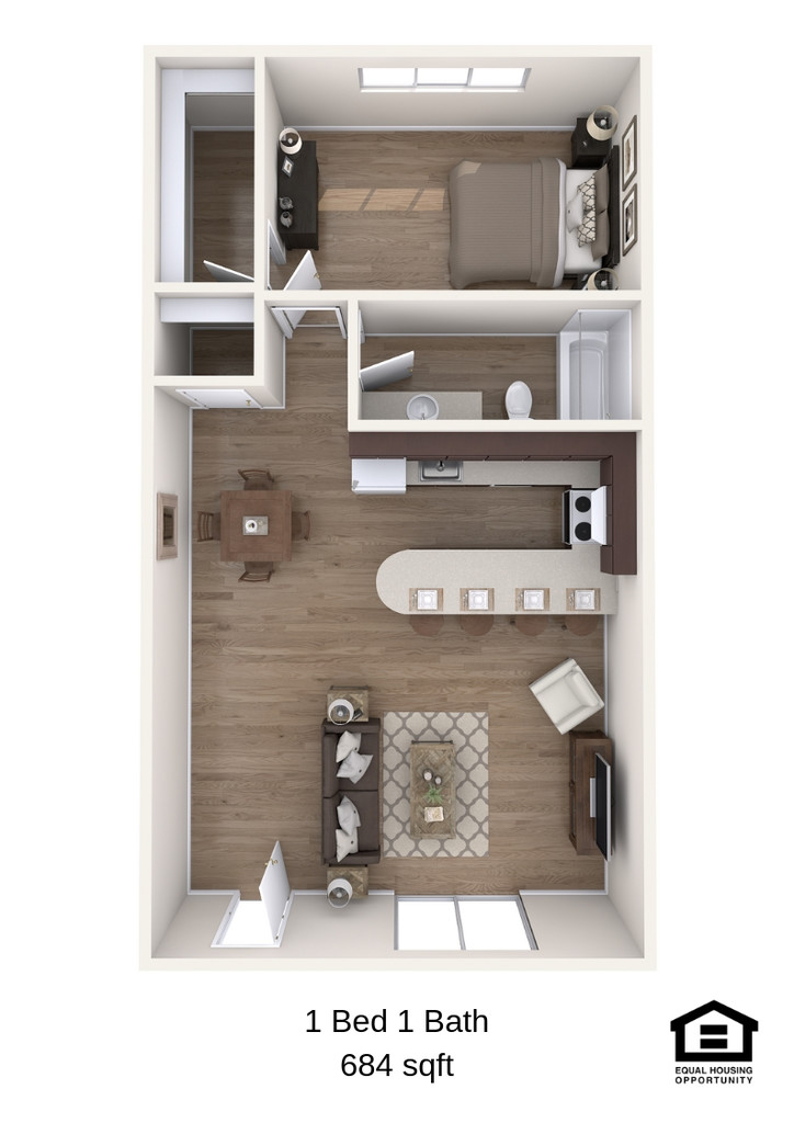 1 Bed, 1 Bath, 684 sq ftAvailable NowModel Gallery