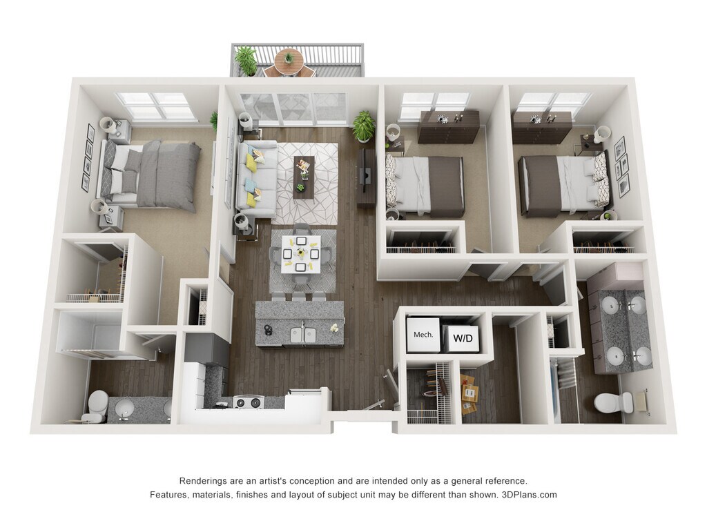 Apartment Model: Market Rate - Three BedroomFrom $2,1503 Bedroom, 2 Bath, 1271 sq ftAvailable Now![]()