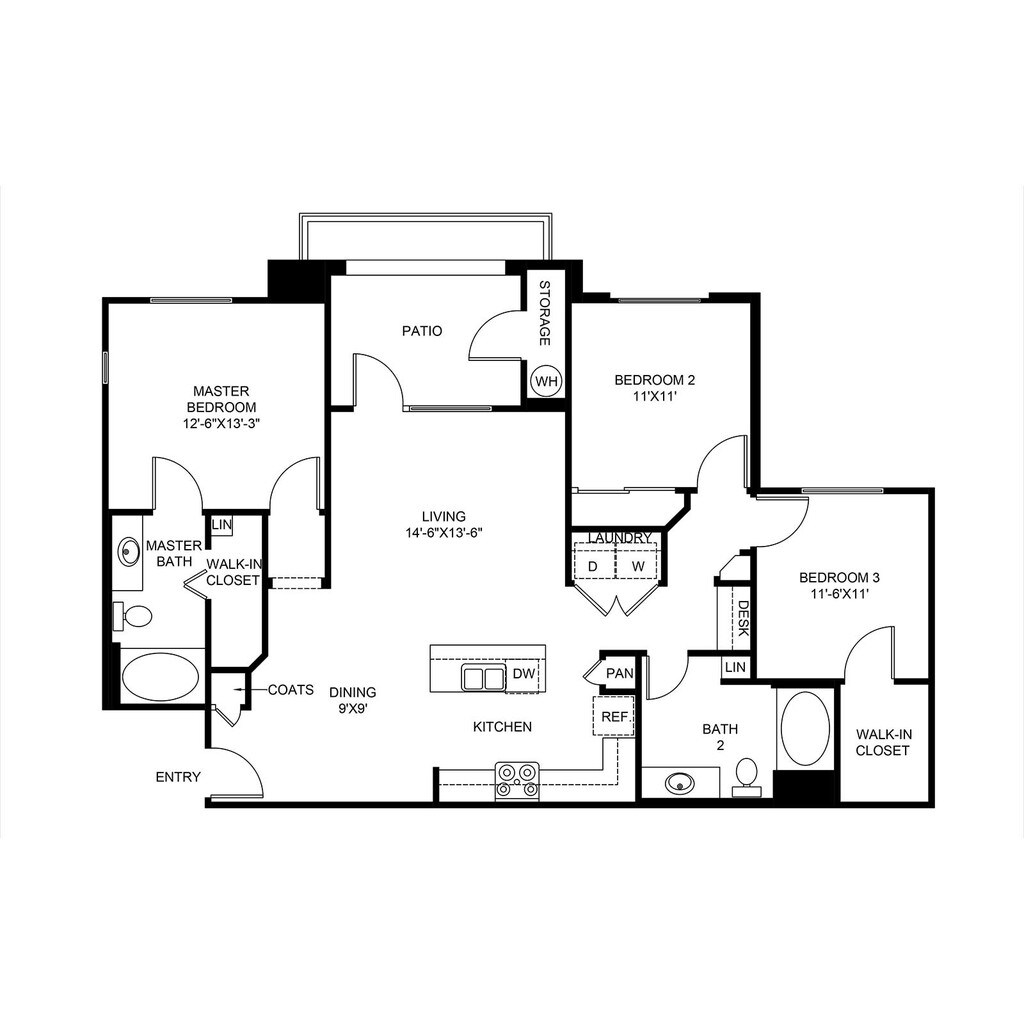 Apartment Model: Willow1 Bedroom, 1 Bath, 820 sq ftUnavailable![]()