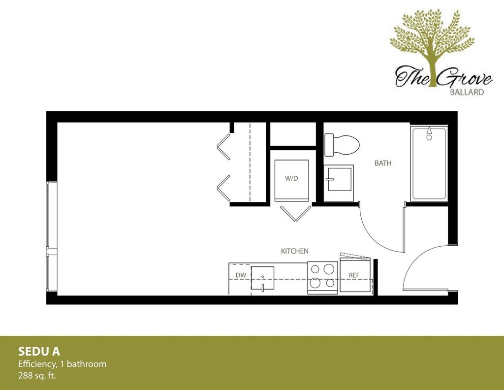 The Grove Ballard offers Studio apartments starting from $1,175 and having 276–732 sq ft. Here is the current pricing and availability: