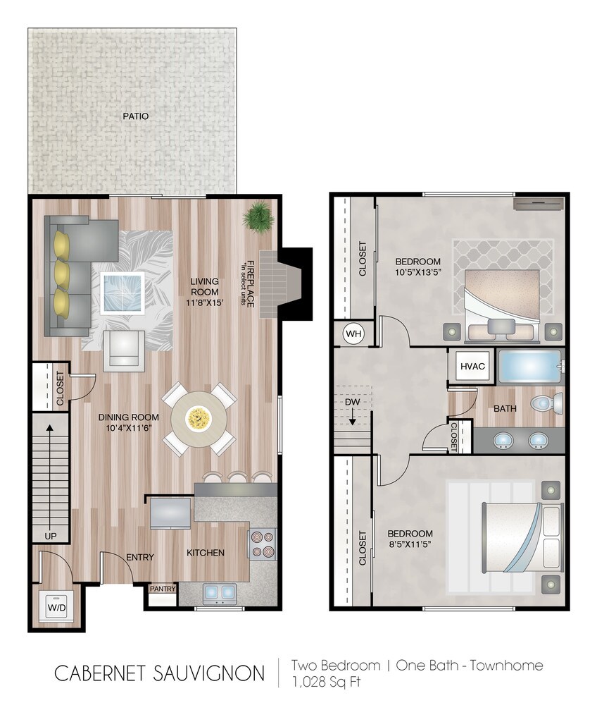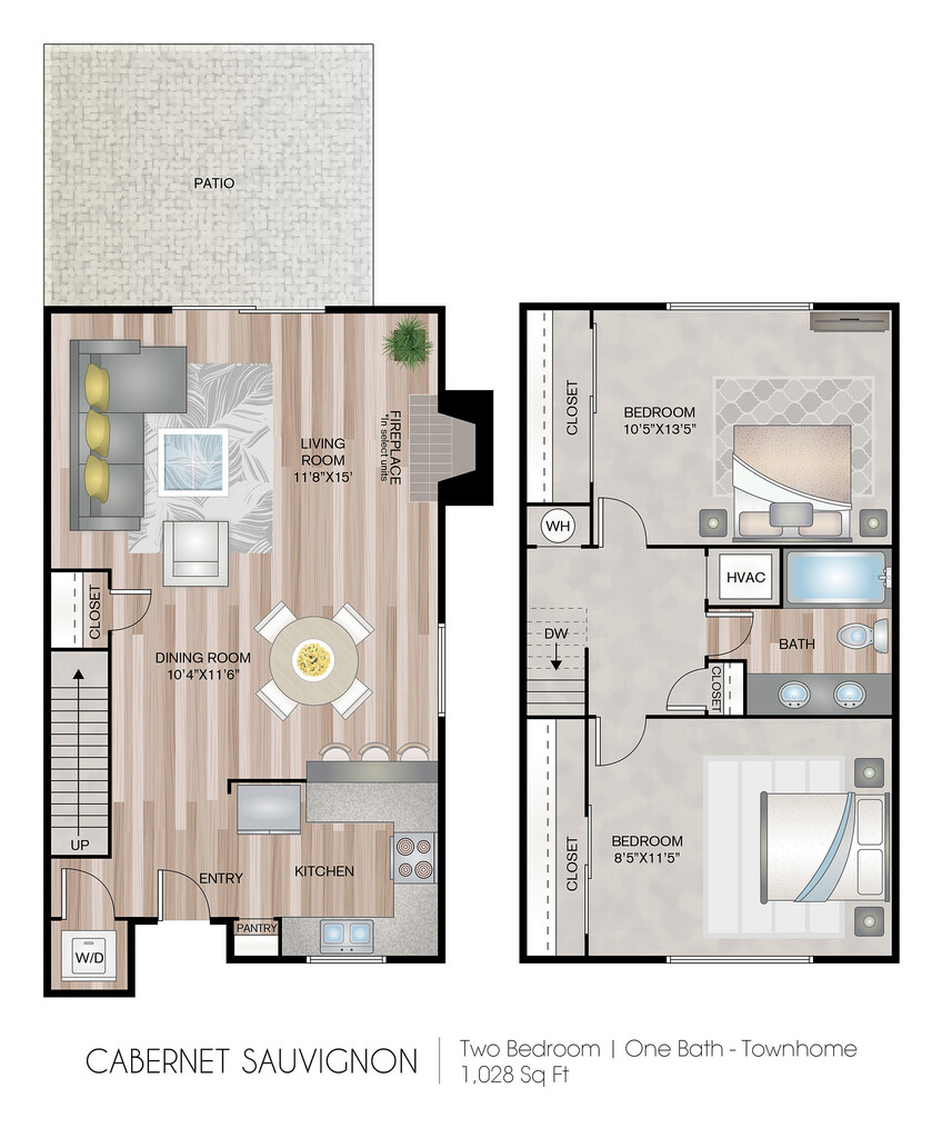 Apartment Model: Cabernet Sauvignon TownhomeFrom $2,3942 Bedroom, 1 Bath, 1028 sq ftAvailable Now![]()