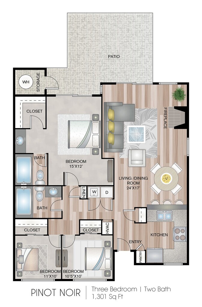 3 Beds, 2 Baths, 1301 sq ftAvailable NowModel Gallery