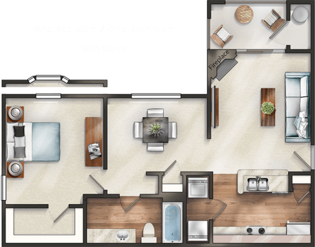 1 Bed, 1 Bath, 850 sq ftAvailable NowModel Gallery