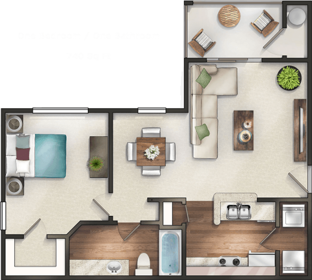 1 Bed, 1 Bath, 740 sq ftAvailable NowCheapest 1 BedroomThis is the cheapest 1 Bedroom at this PropertyModel Gallery