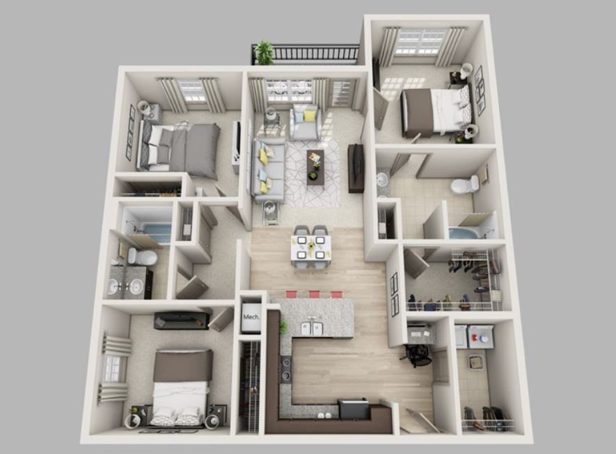 3 Beds, 2 Baths, 1300 sq ftAvailable NowModel Gallery