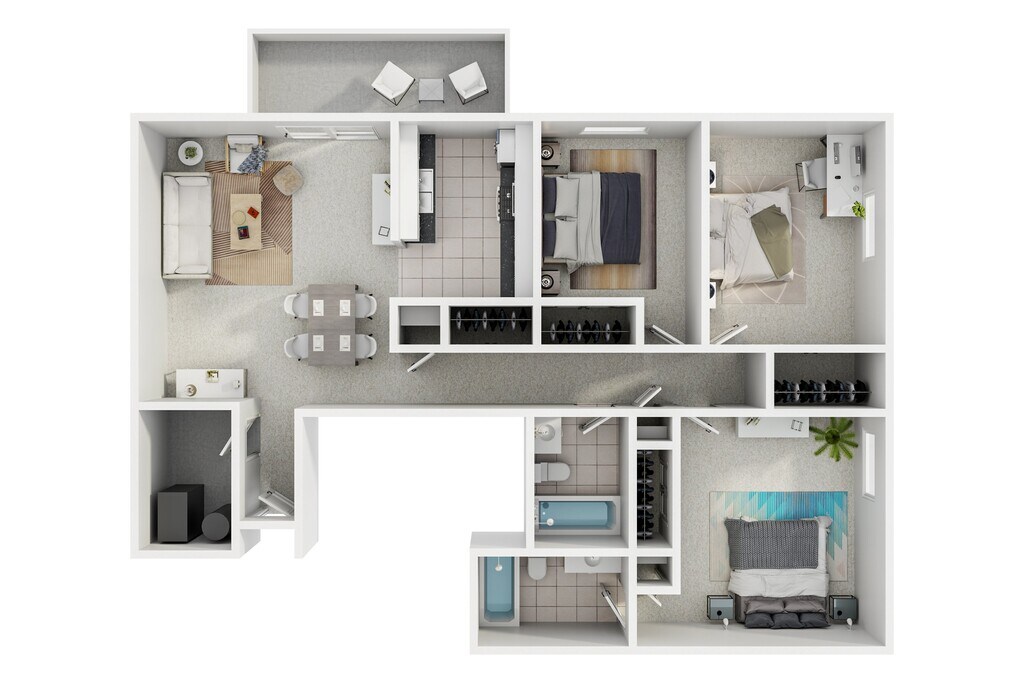 CA3 - Floorplan 1 Apartment Unit: PrivateApartment Model: CA3$2,1301 Bedroom, 1 Bath, 894 sq ftAvailable August 14, 2026Floorplan CA4
