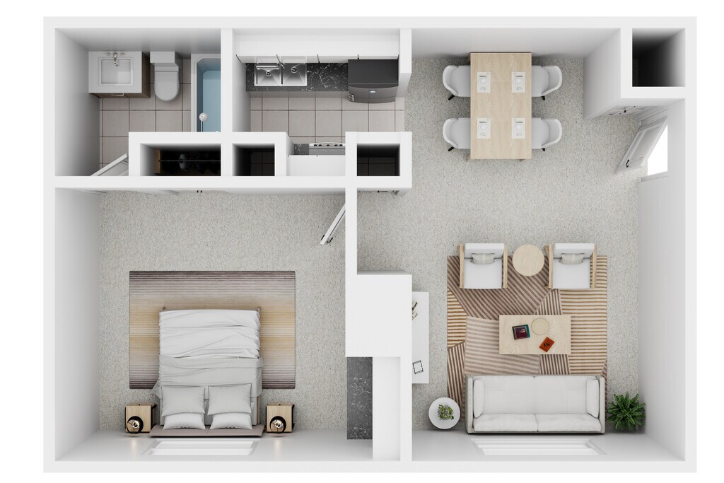 SA1 - Floorplan 1 Apartment Unit: PrivateApartment Model: SA1$1,9801 Bedroom, 1 Bath, 540 sq ftAvailable August 14, 2026Floorplan PA1