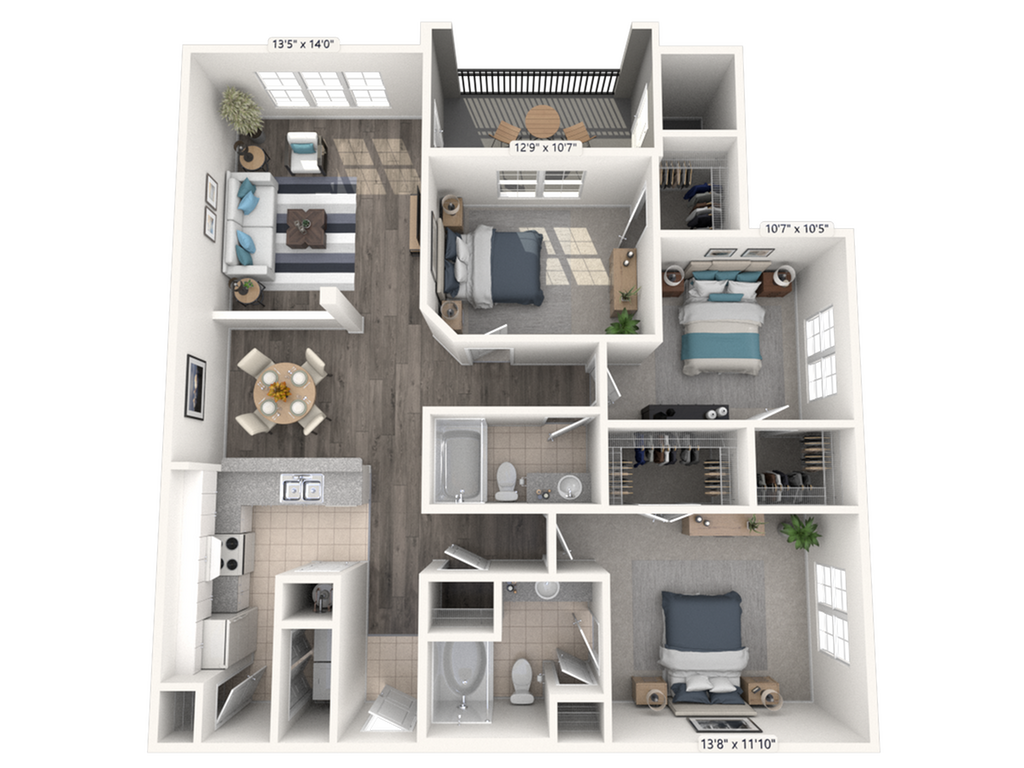 2 Beds, 2 Baths, 1235 sq ftAvailable NowModel Gallery