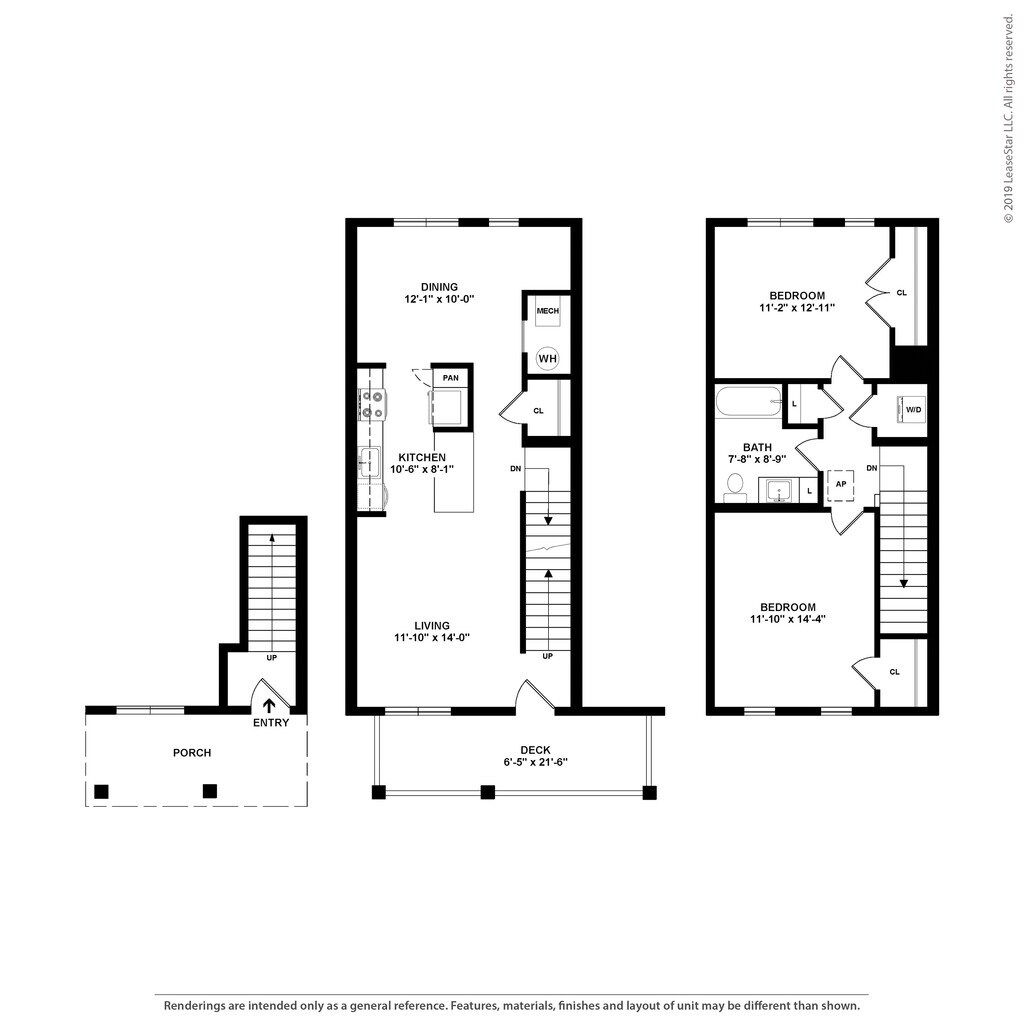 2 Beds, 1.5 Baths, 1155 sq ftLargest 2 BedroomThis is the largest 2 Bedroom at this PropertyModel Gallery