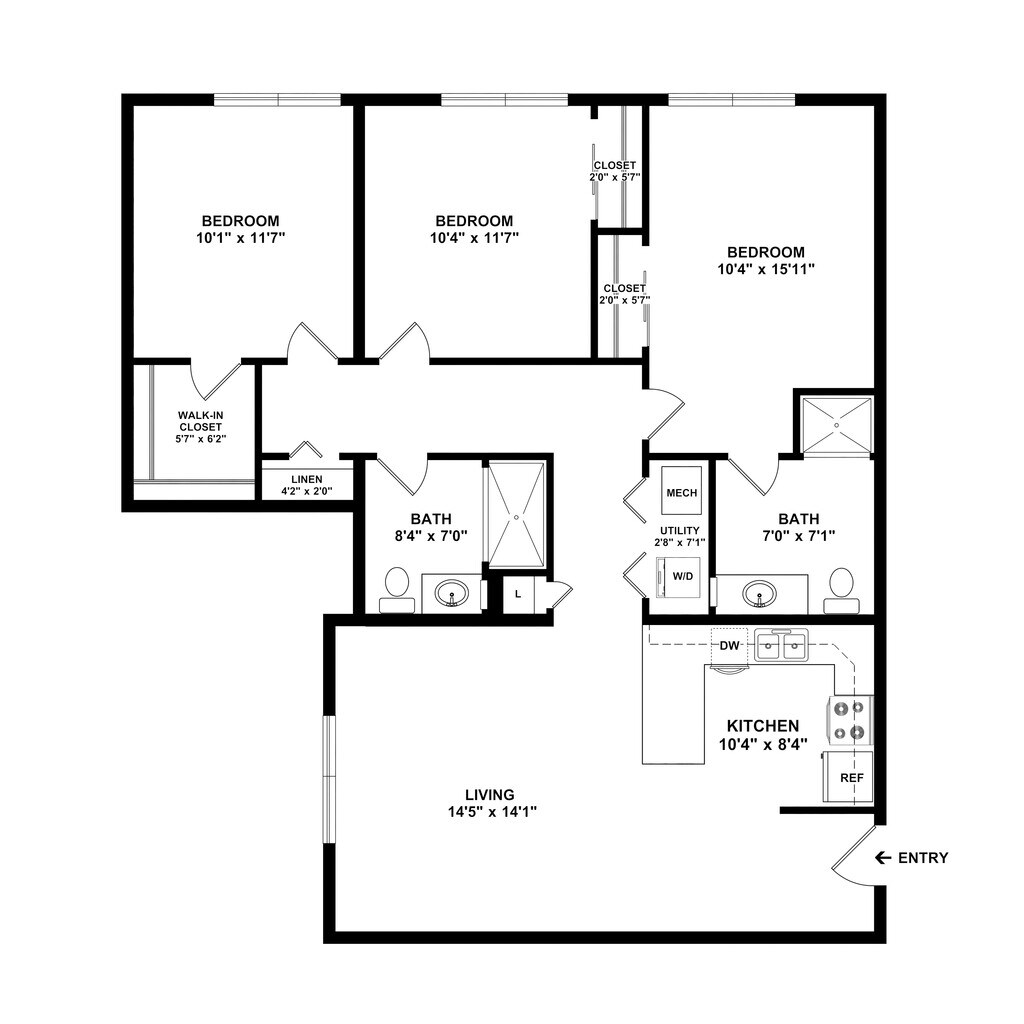 Apartment Model: 3BR$1,6593 Bedroom, 2 Bath, 1188 sq ftAvailable Now![]()