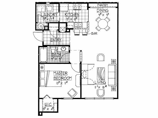 1 Bed 1 Bath - Floorplan 1 ![]()