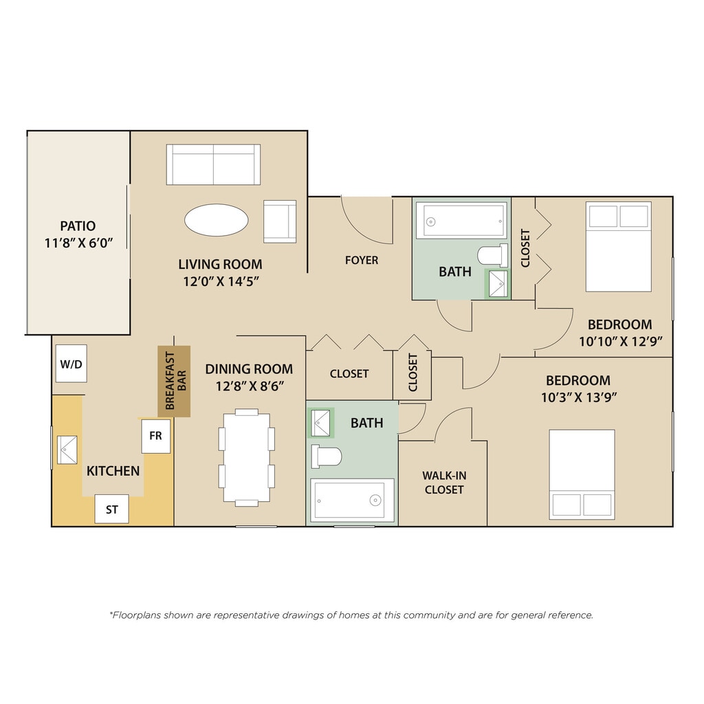 Apartment Model: 2 Bedroom / 2 Bath - R2 Bedroom, 2 Bath, 1000 sq ftAvailable Now![]()