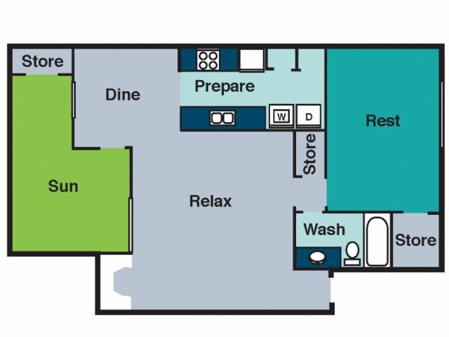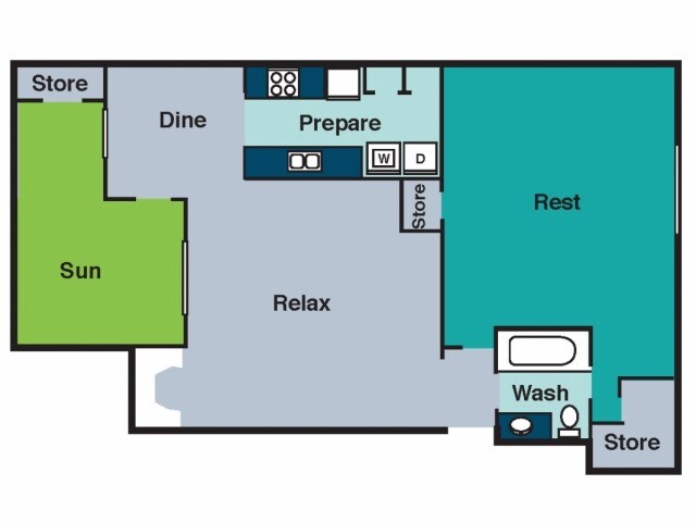 1 Bed 1 Bath-B - Floorplan 1 1 Bed 1 Bath-C