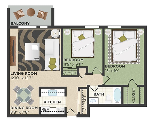 Apartment Model: 2 Bed 1 Bath2 Bedroom, 1 Bath, 858 sq ftUnavailable![]()