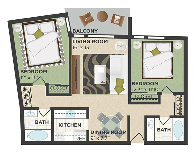 2 Beds, 2 Baths, 909 sq ftModel Gallery