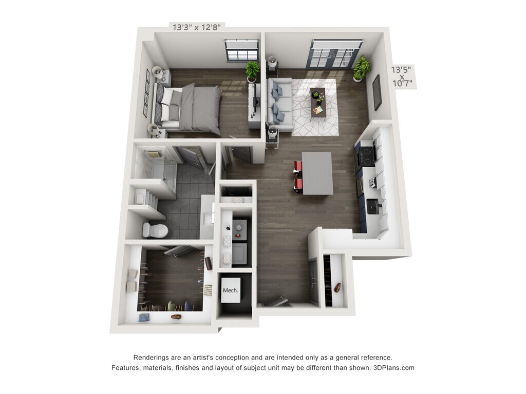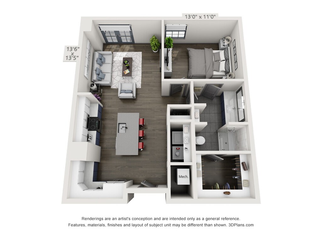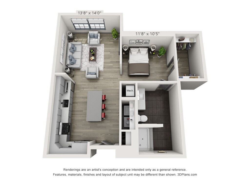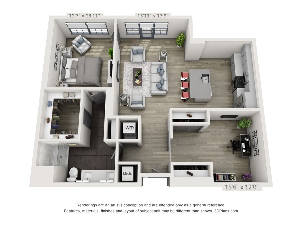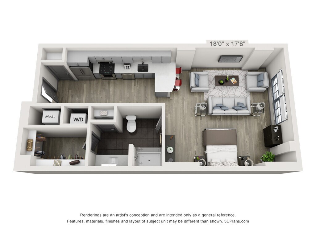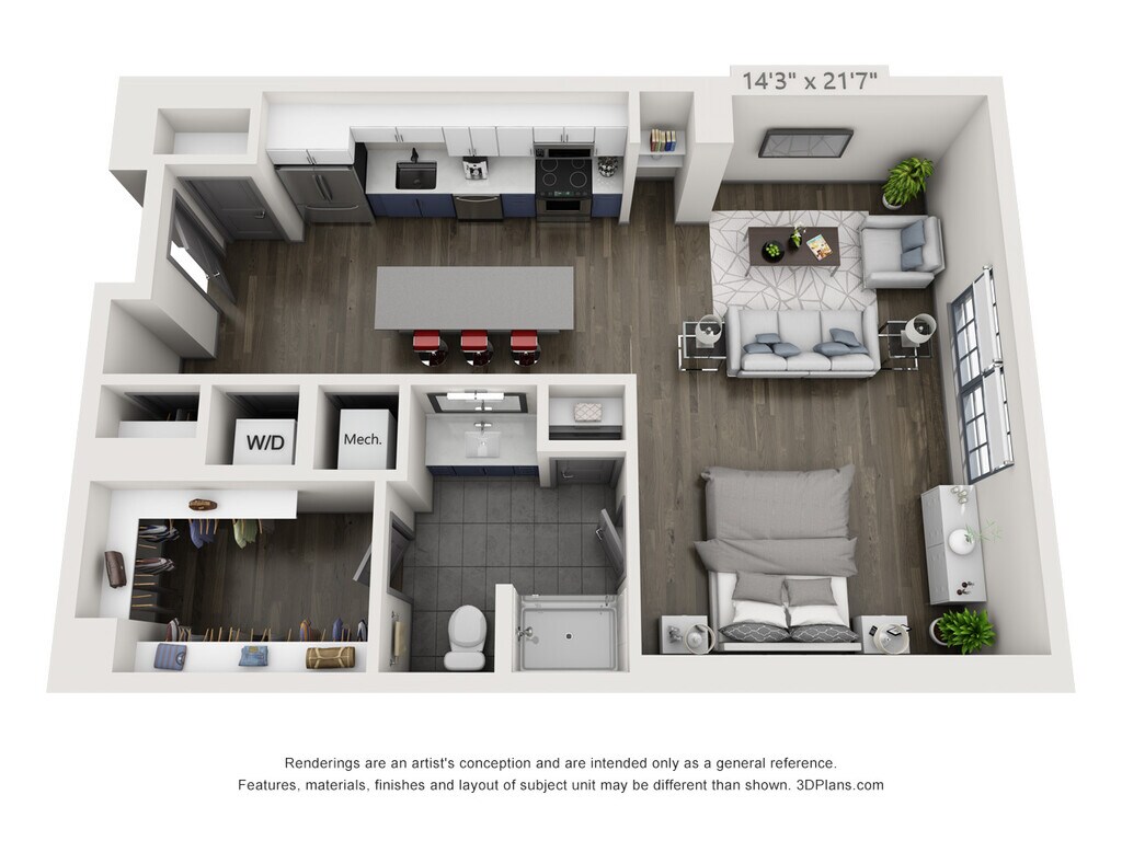 Studio, 1 Bath, 717 sq ftAvailable NowModel Gallery