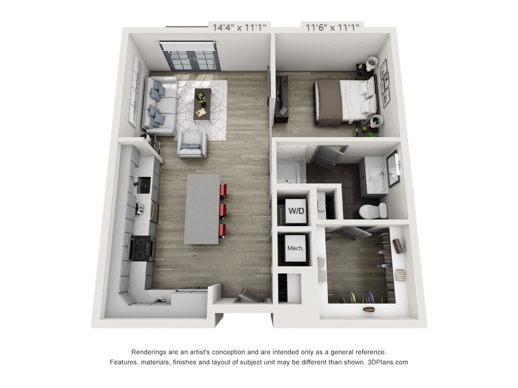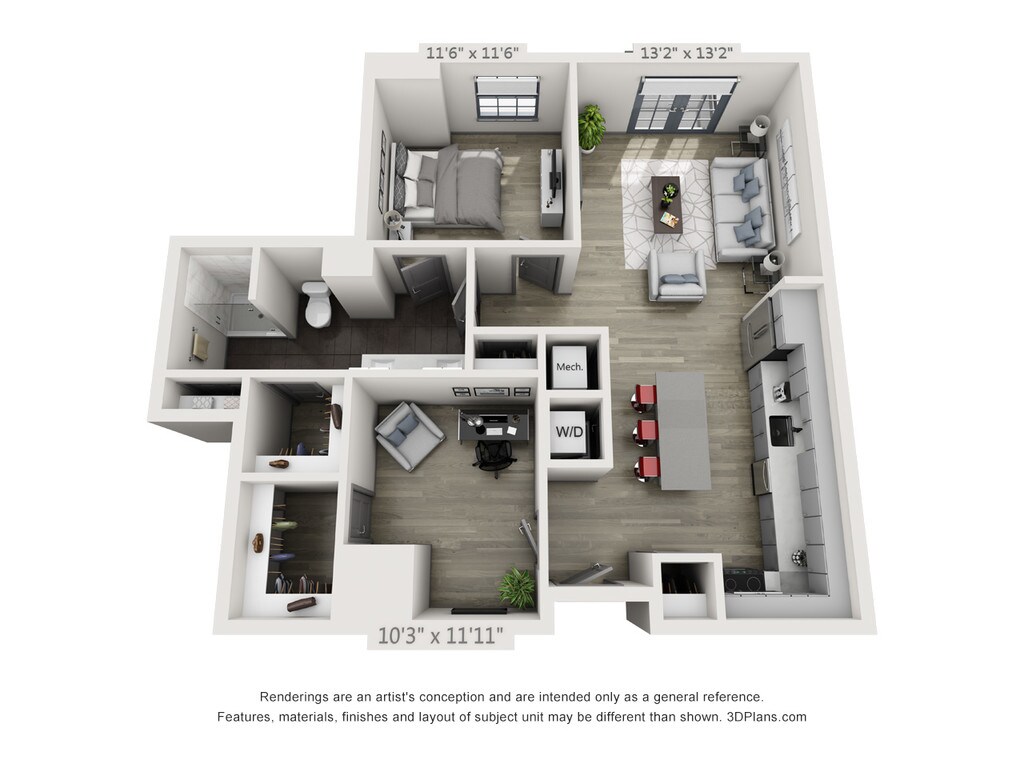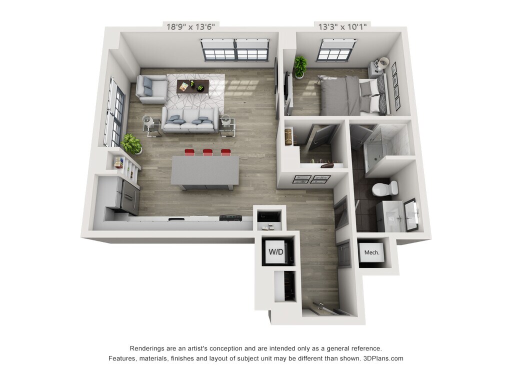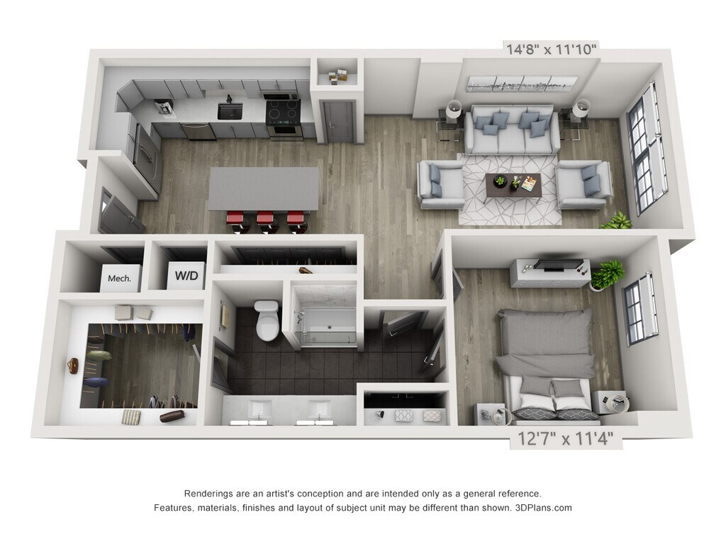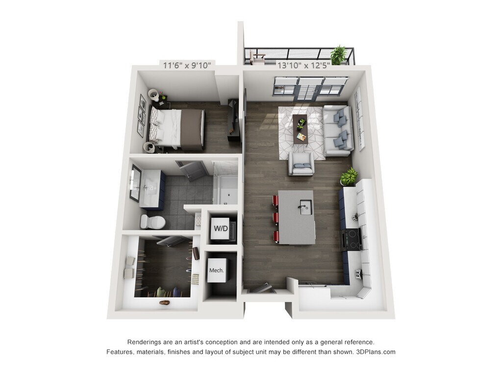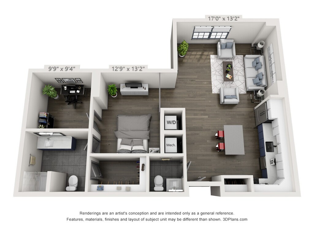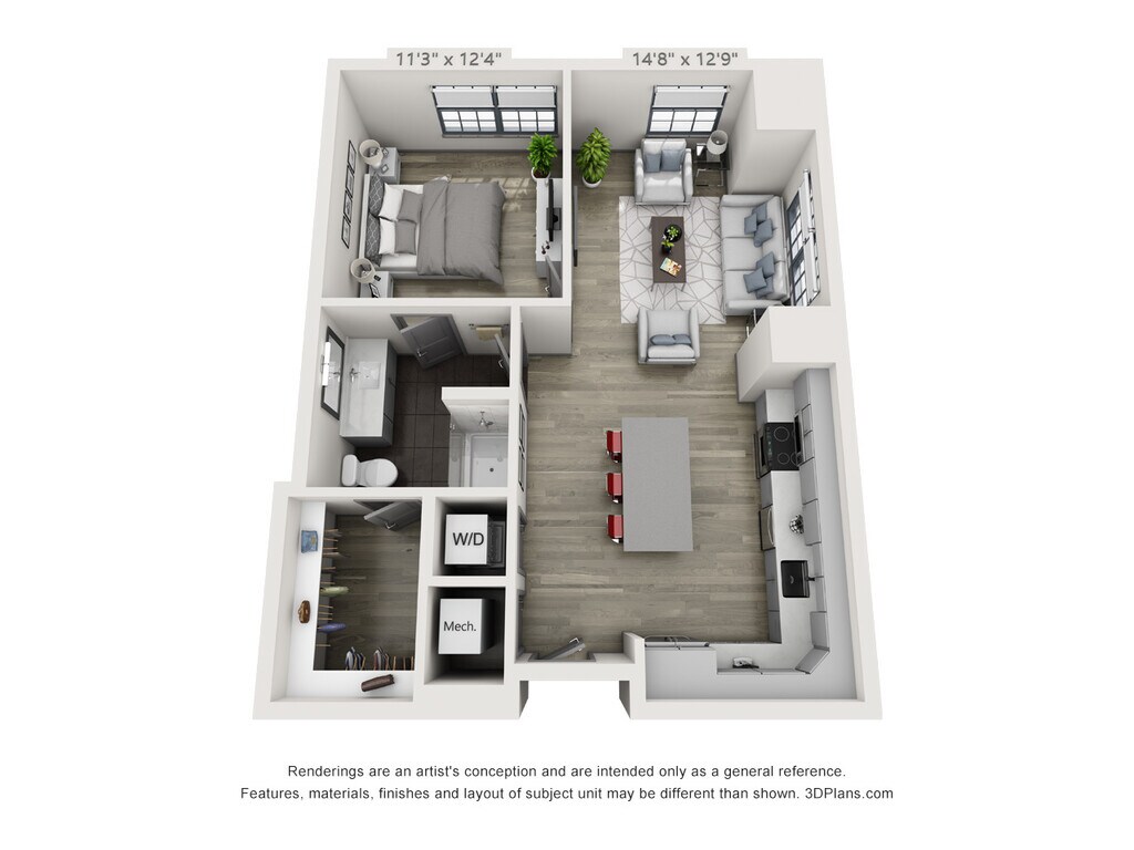 Studio, 1 Bath, 717 sq ftAvailable NowModel Gallery