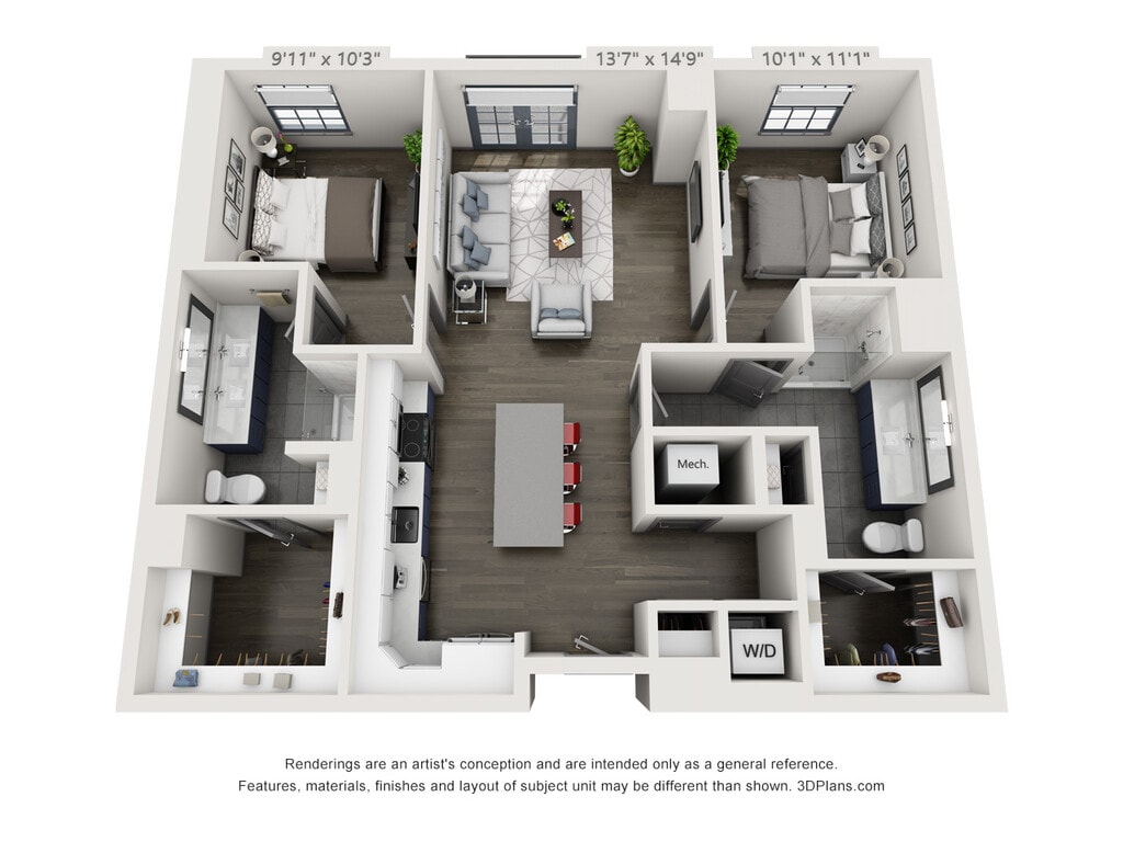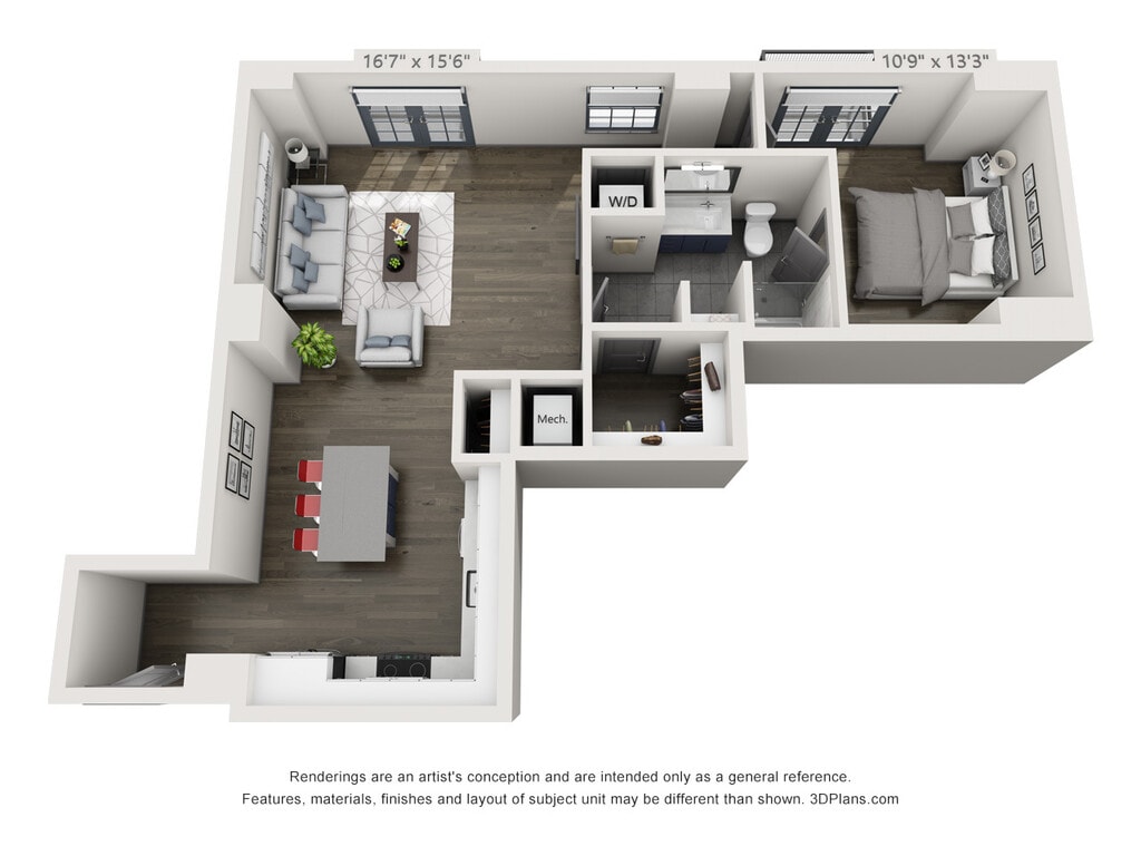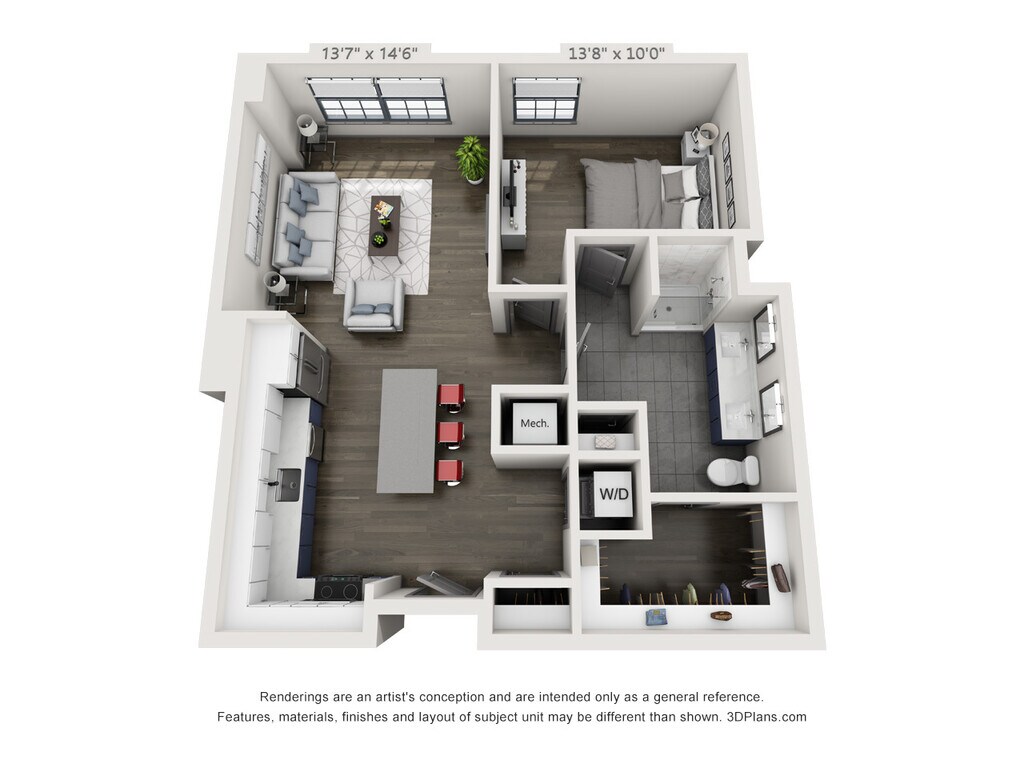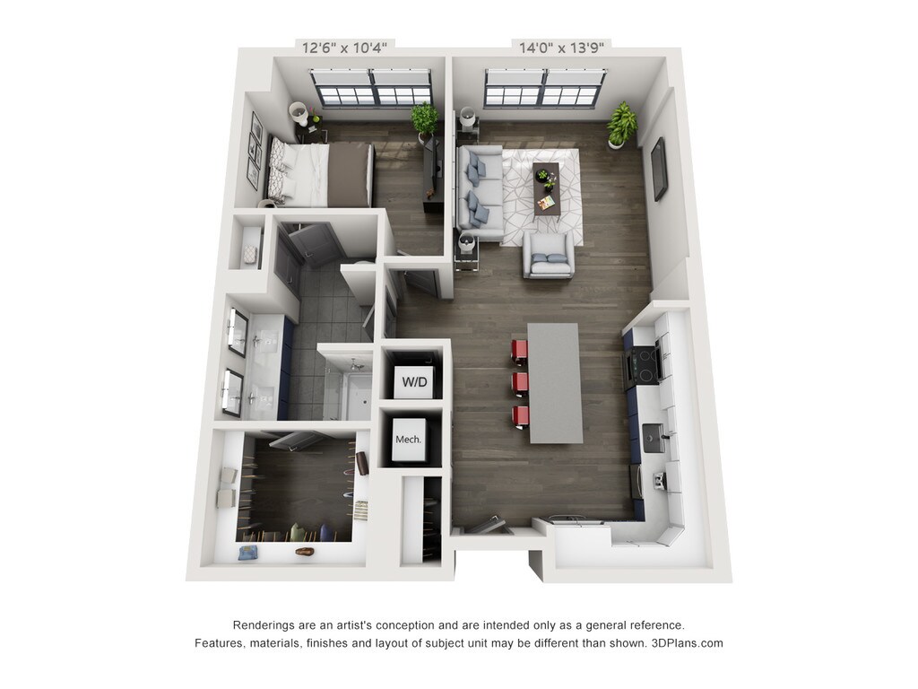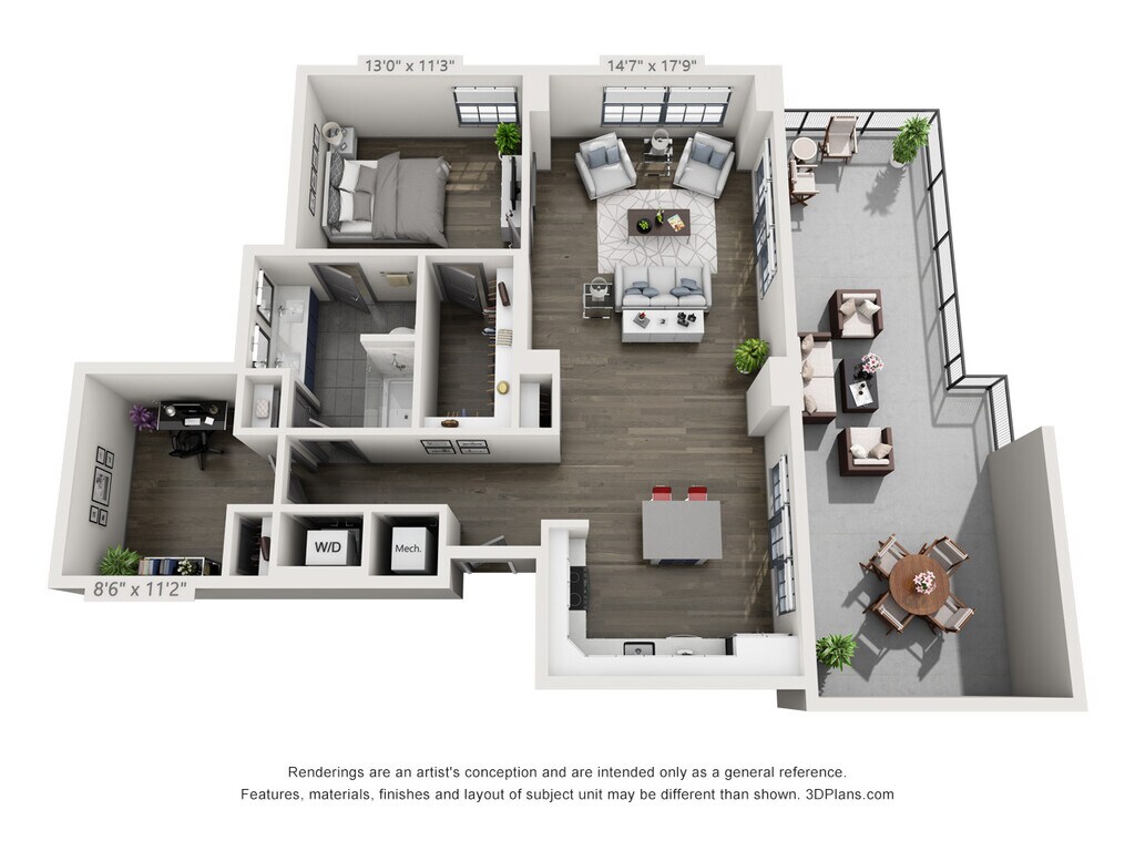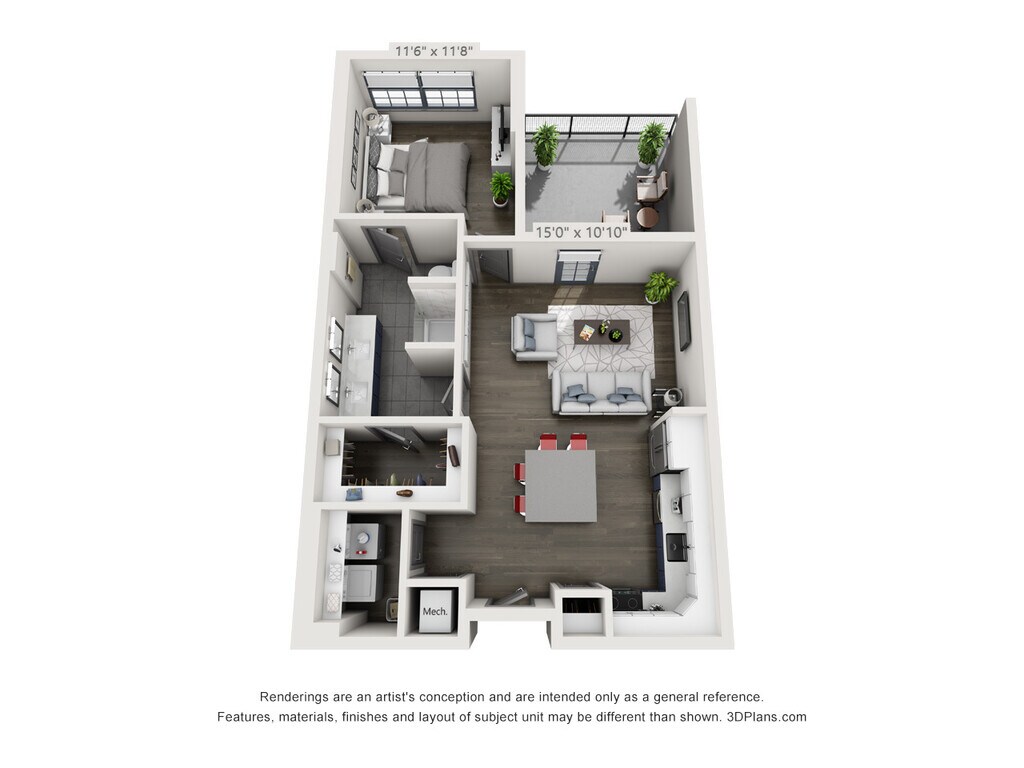 Studio, 1 Bath, 717 sq ftAvailable NowModel Gallery