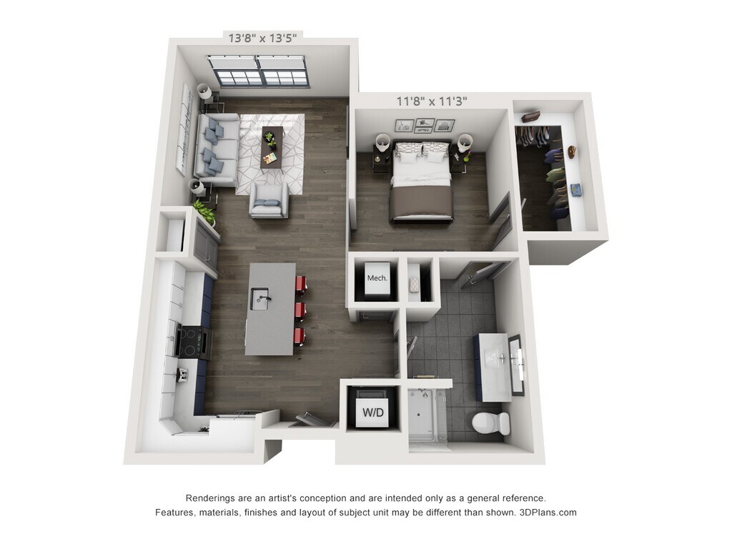 Studio, 1 Bath, 641 sq ftModel Gallery