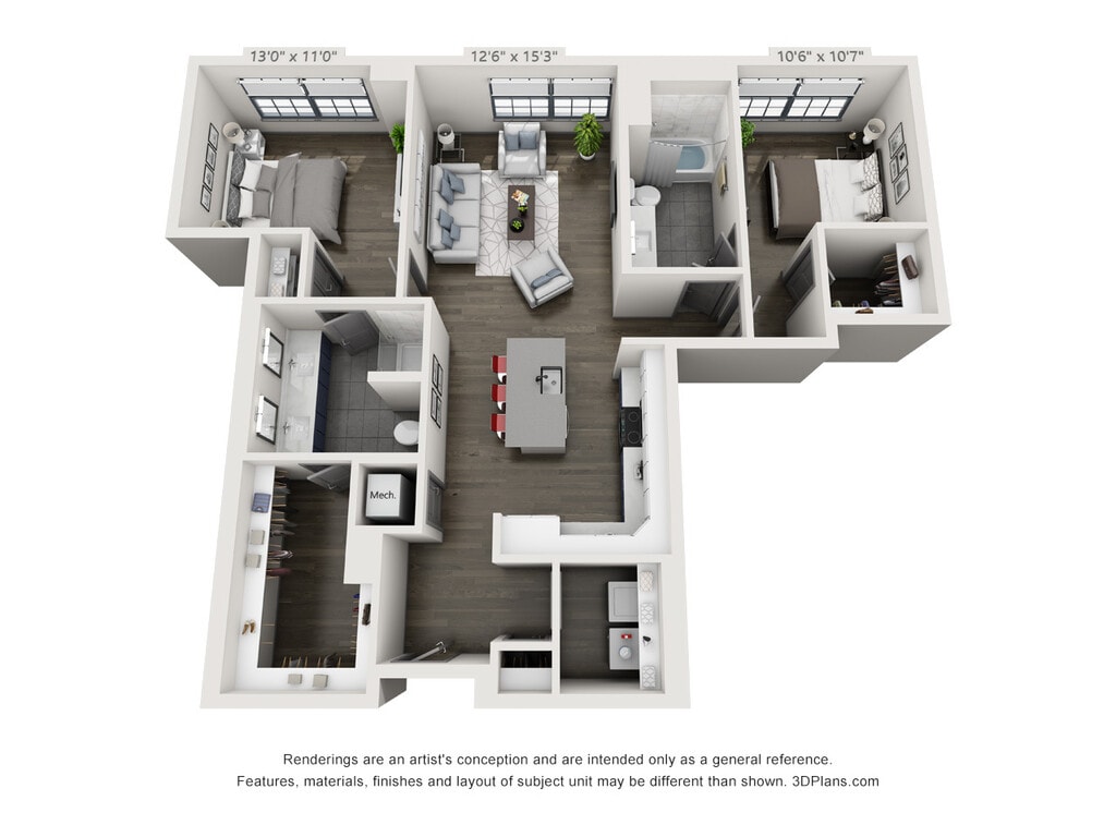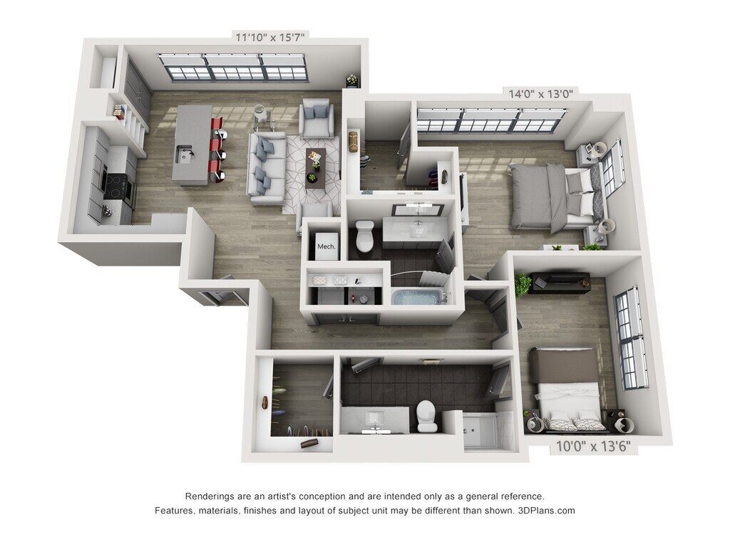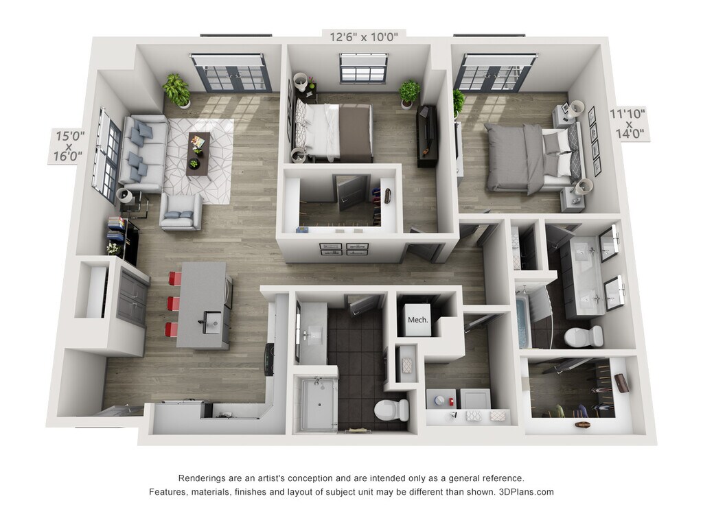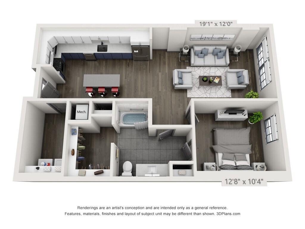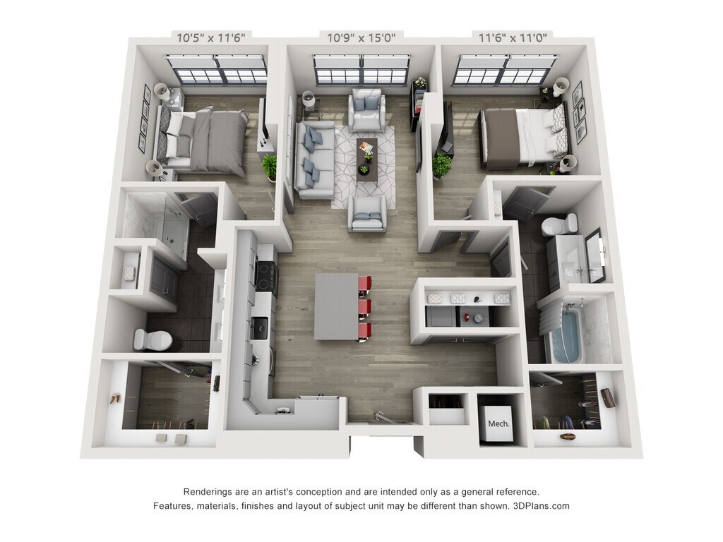 Studio, 1 Bath, 691 sq ftAvailable NowModel Gallery