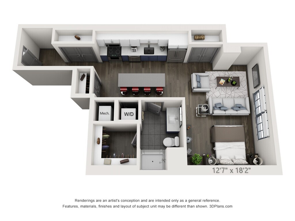 Studio, 1 Bath, 477 sq ftModel Gallery